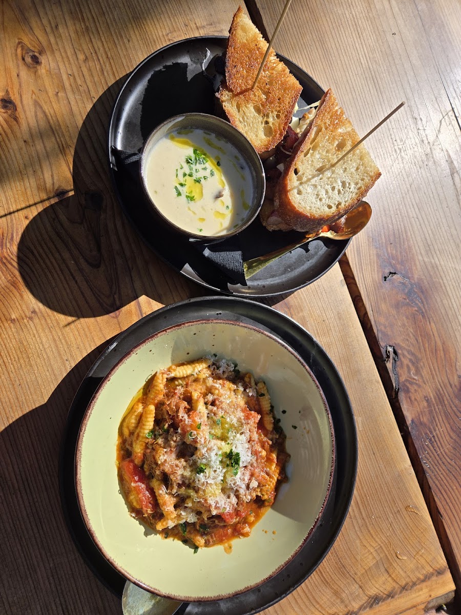 Went here for dinner last night to finally try this place. I really liked the coastal lemon spritz cocktail I would get that again, my partner liked her sour beer. We tried the deviled eggs, house made pasta (bolognese), and Tanya pizza. We would try other items next time rather than reorder those but the food quality was good we just weren't blown away by those items but we will be back to try other things for sure. The service was great and the ambiance was casual and fun.